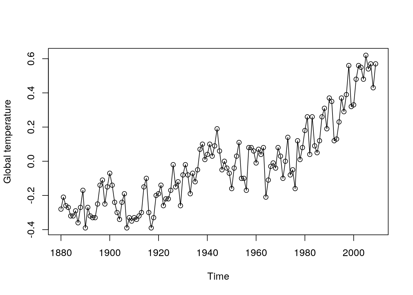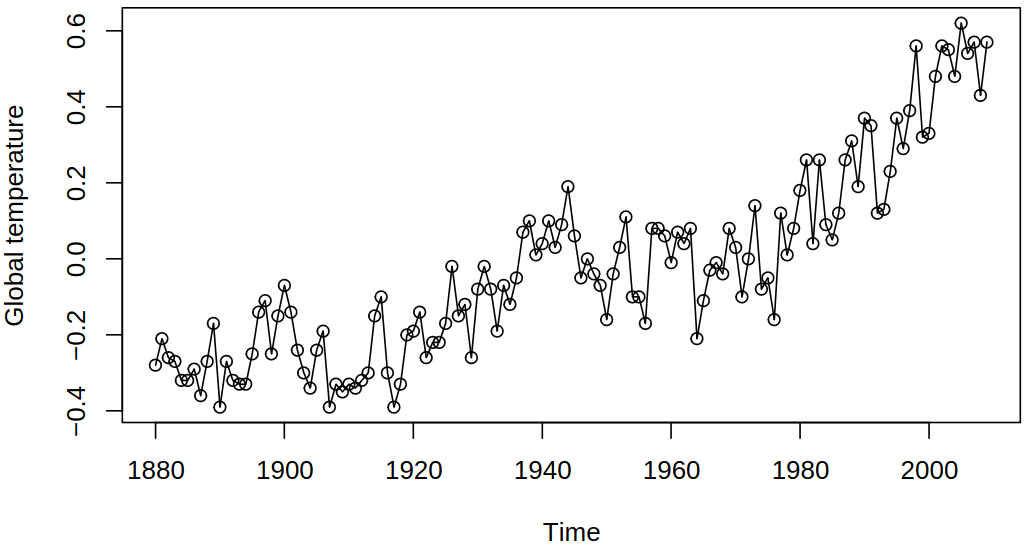 plot(gtemp,type="o",ylab="Global temperature")