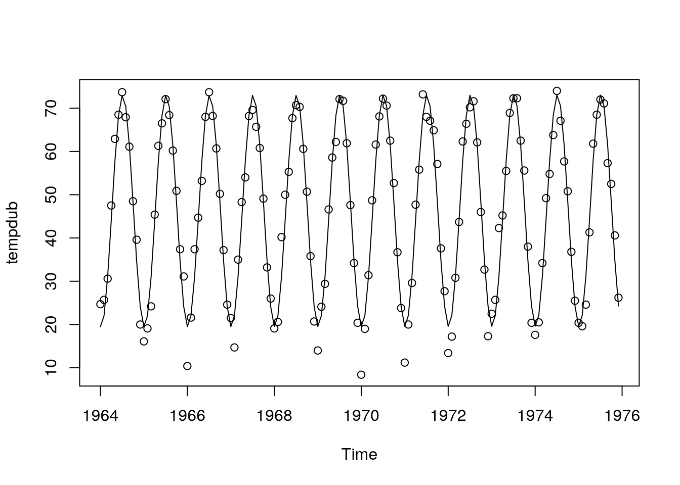 lm(formula = tempdub ~ time(tempdub) + cos(2 * pi * time(tempdub)) +