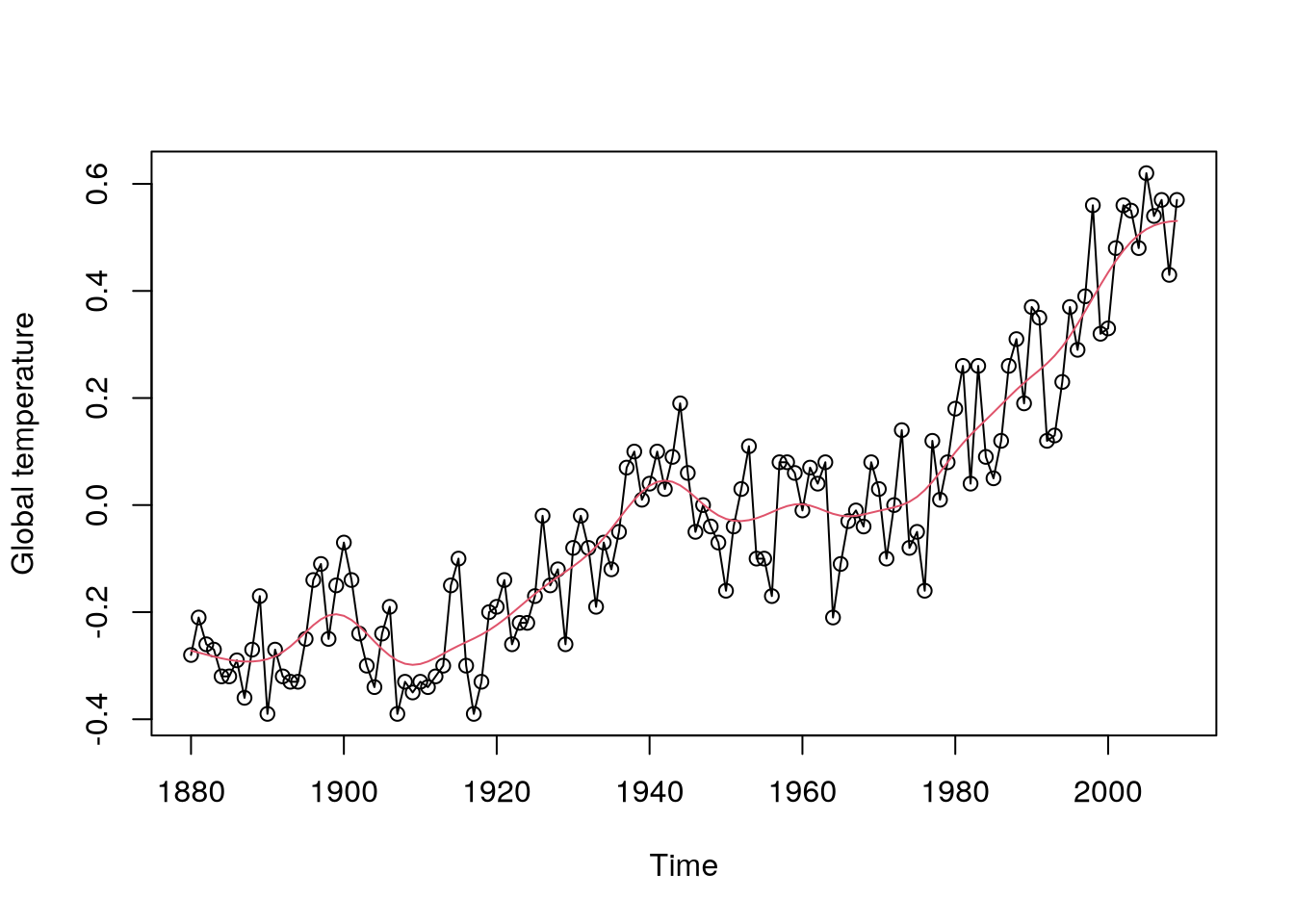 plot(gtemp,type="o",ylab="Global temperature")5 Regression Methods for Deterministic Components